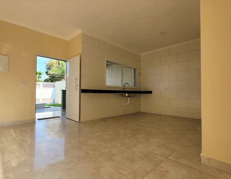 Casa com 3 dormitórios sendo 1 suite, wc social, sala e cozinha americana.