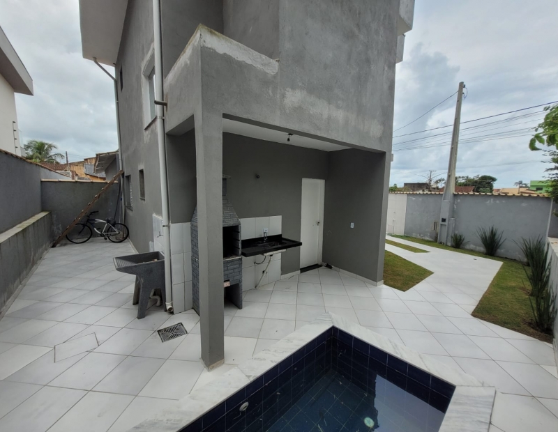 Quintal espaçoso, piscina, churrasqueira e lavabo.