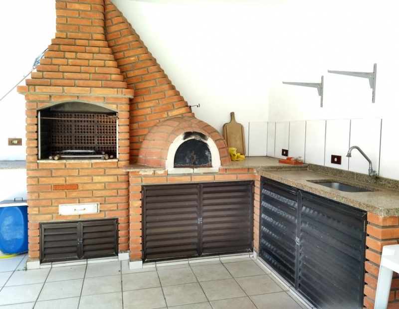 Área de churrasqueira com forno a lenha.