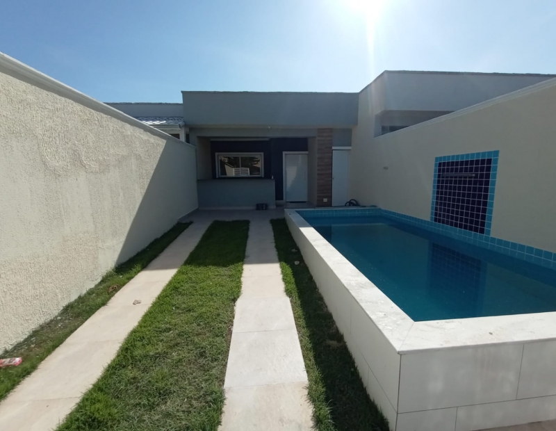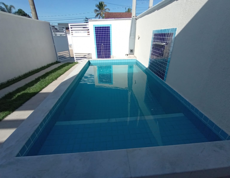 Piscina, área de churrasqueira e lavabo externo.