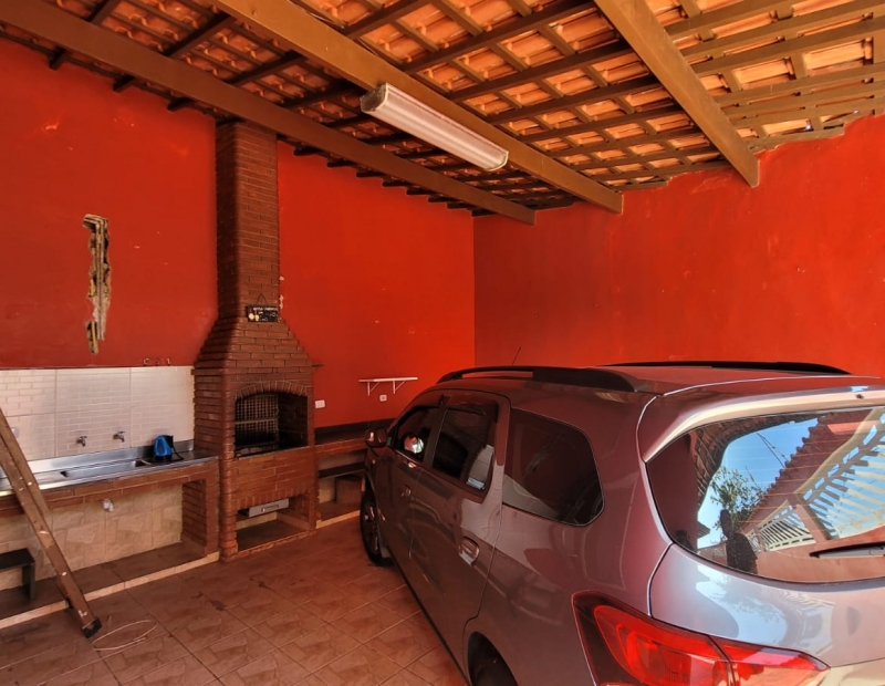 Vaga de garagem para 6 veículos e área de serviço coberta.