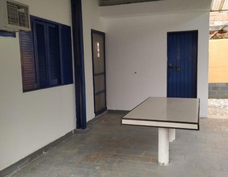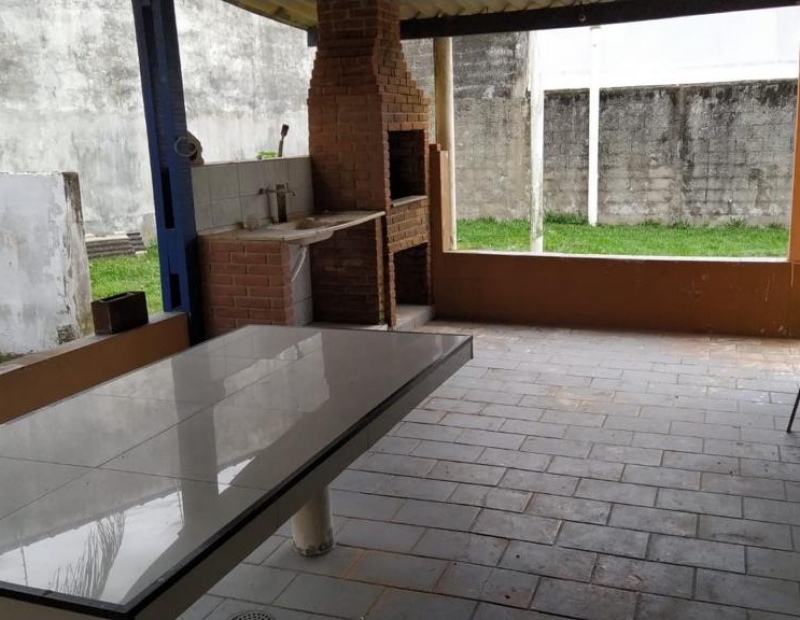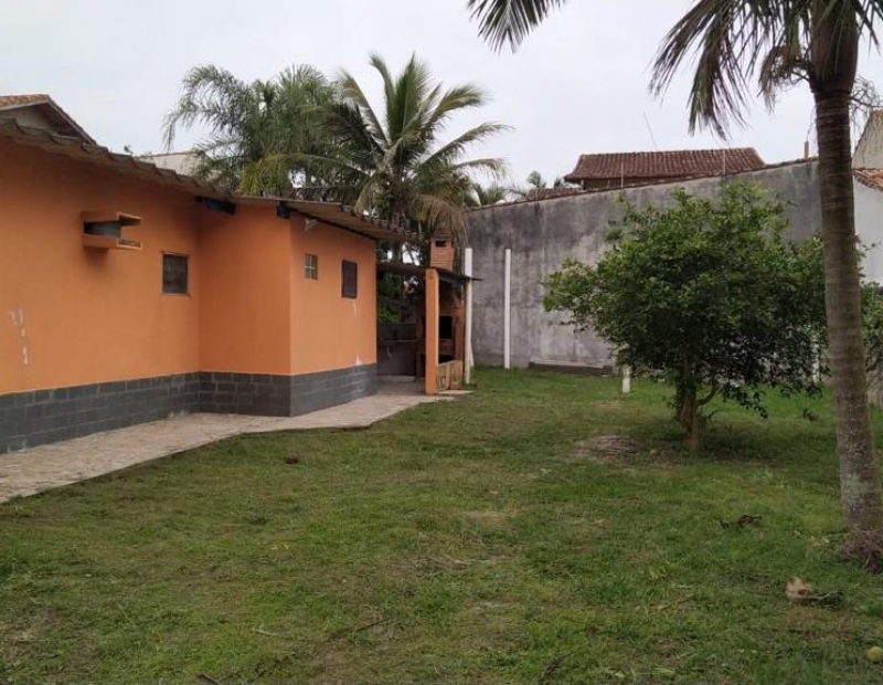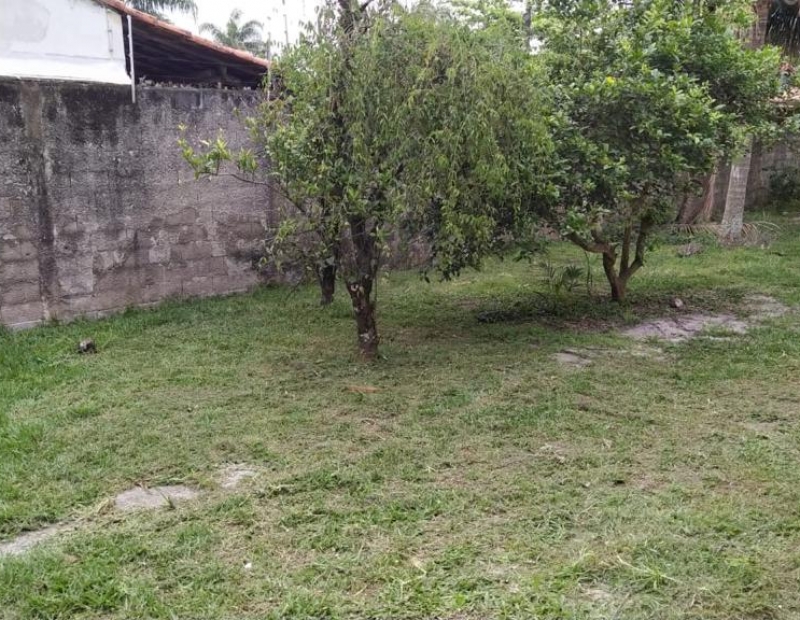 Quintal amplo com árvores frutíferas, área de serviço coberta, churrasqueira e garagem para cerca de 2 veículos.