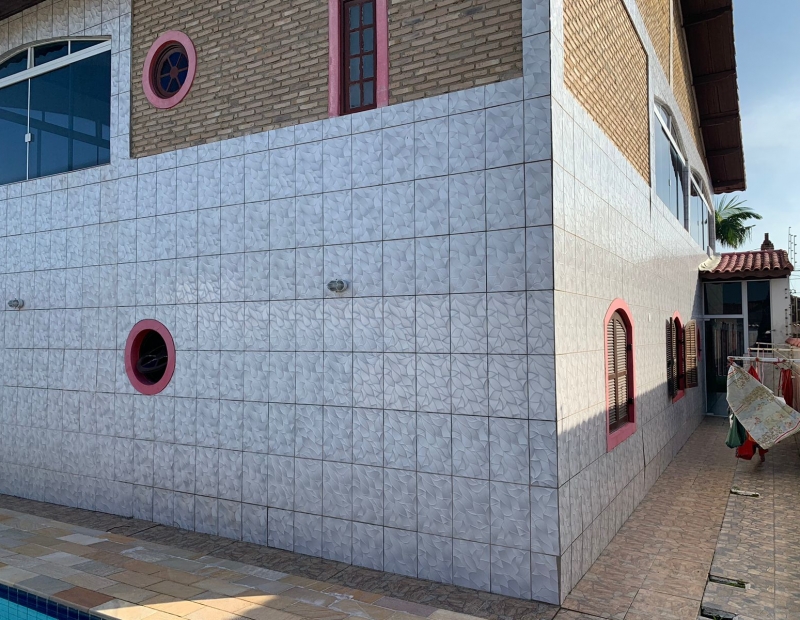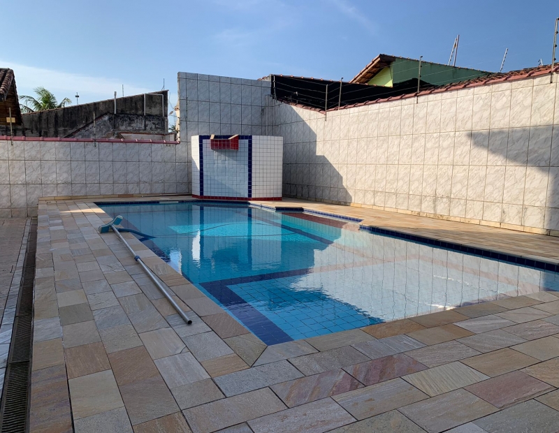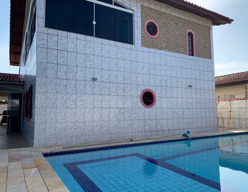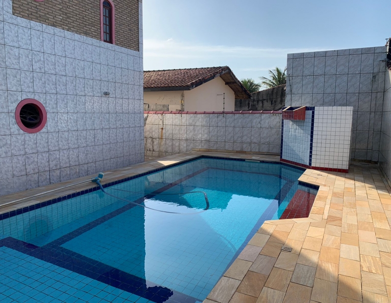 Churrasqueira, piscina, área de lazer e quintal amplo
