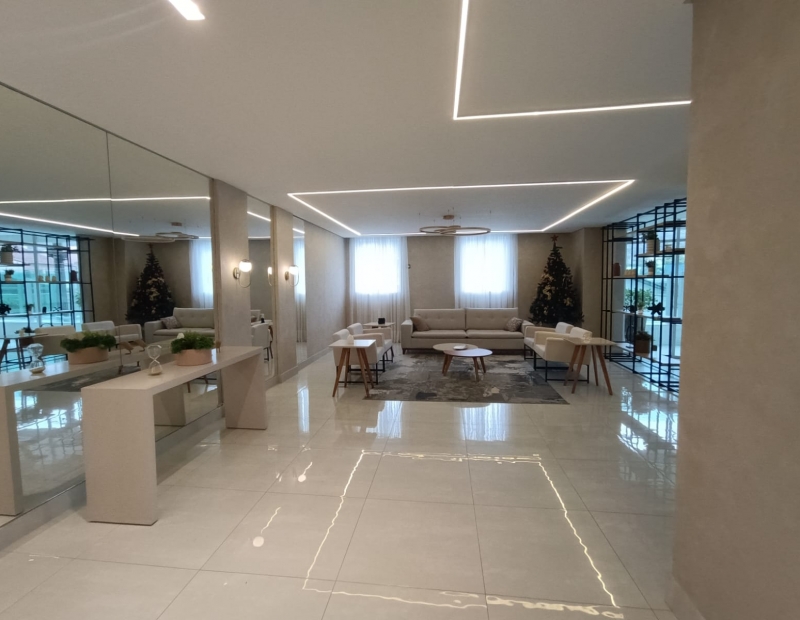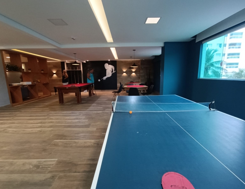 Área comum com salão de festas, salão de jogos, espaço gourmet, piscina, quadra e brinquedoteca.