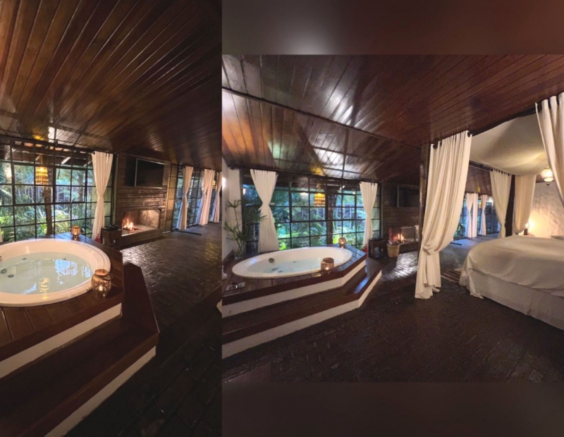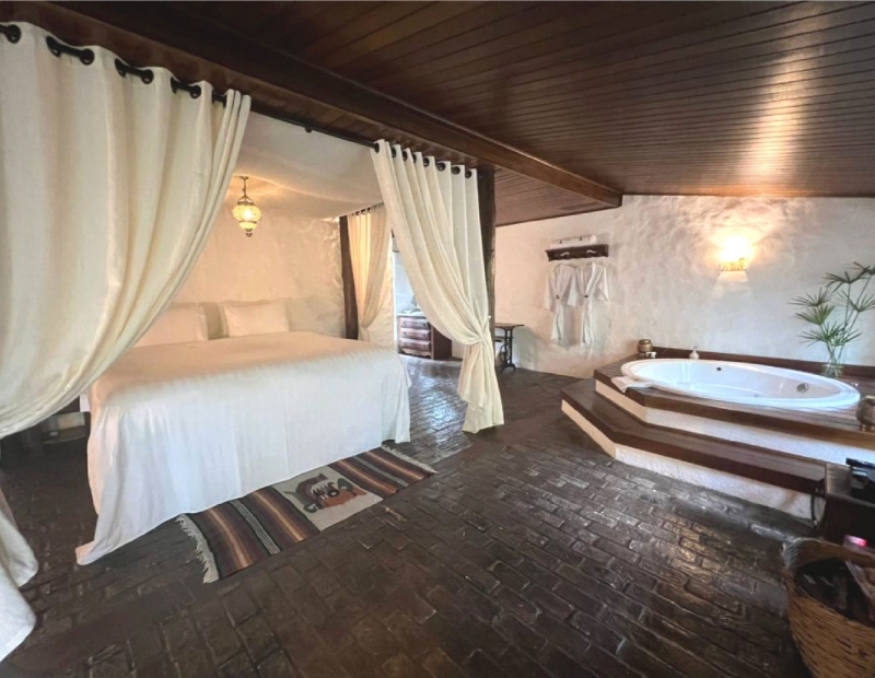 São 12 suítes encantadores: Cada um delas oferece o conforto e a privacidade que os hóspedes procuram, criando uma expectativa inesquecível em meio a natureza. Restaurante exclusivo: A residência principal conta com um restaurante que não apenas oferece uma culinária deliciosa, mas também proporciona vistas deslumbrantes da paisagem.