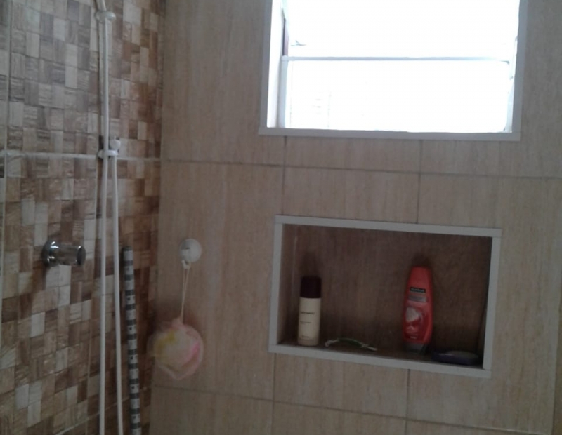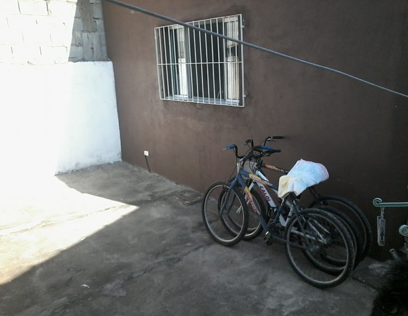 Garagem para 2 autos, quintal amplo, com porta lateral.