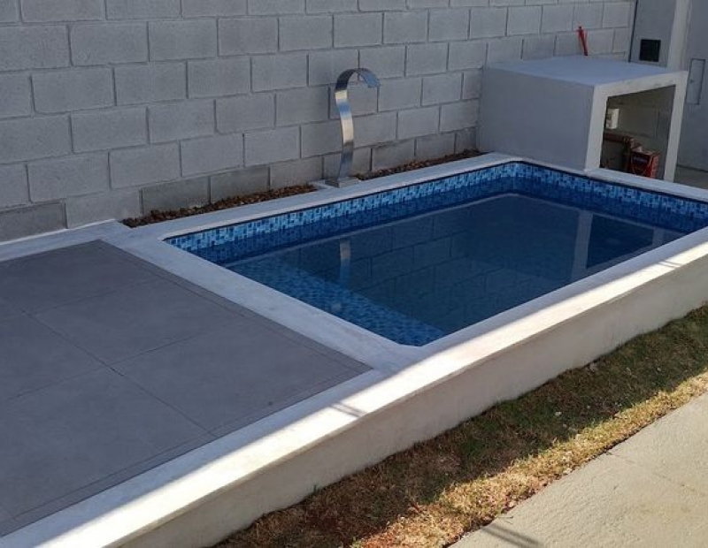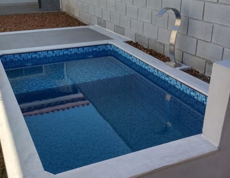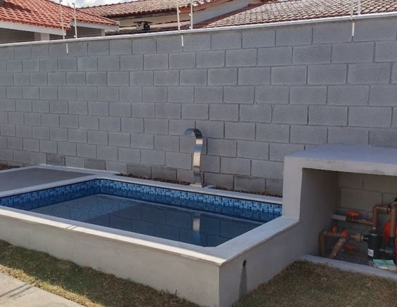 Linda piscina com cascata.