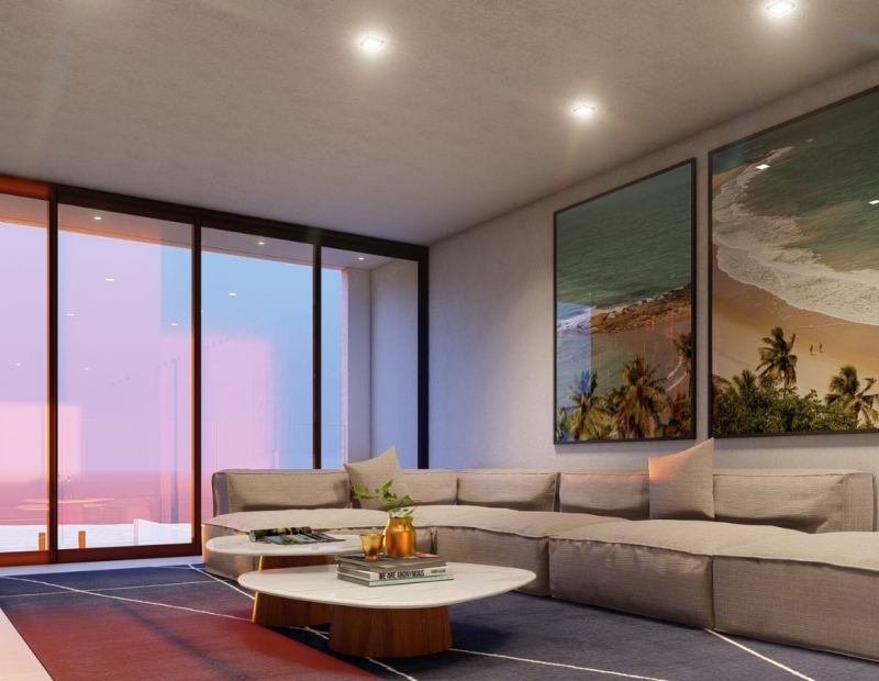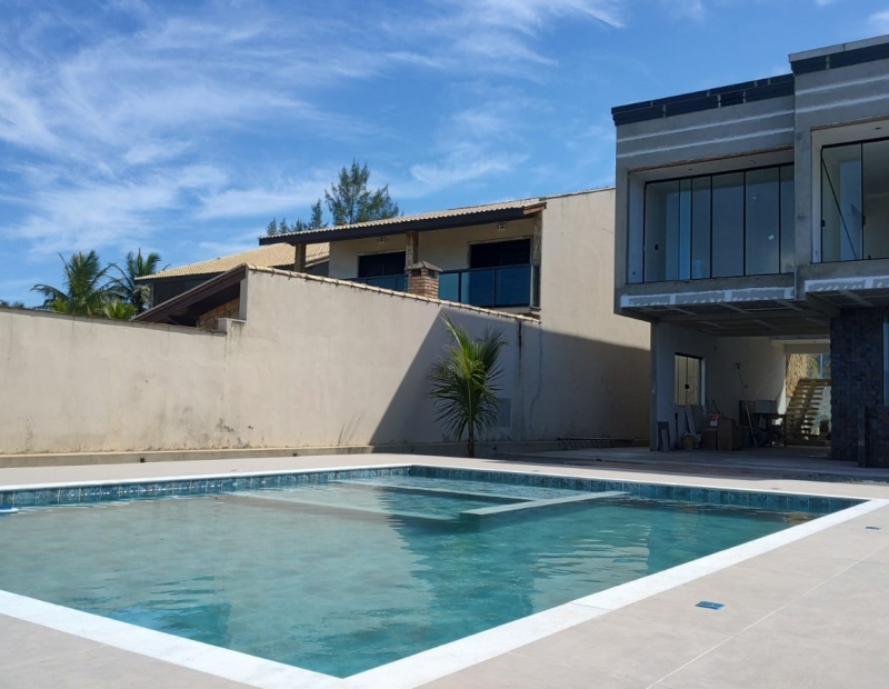 Piscina com SPA em alvenaria revestida com borda infinita para frente da praia.
