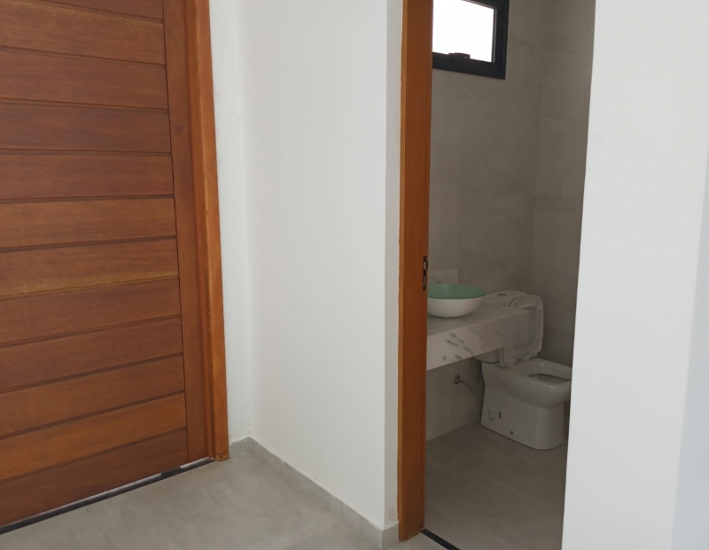 Térreo com sala e cozinha integrada bem espaçosa e lavabo, piso superior com 2 suítes (uma possui closet e wc com pia dupla), wc social e um dormitório. Fundo do imóvel conta com wc externo, linda pia com espaço para churrasqueira em área coberta e uma belíssima piscina para a família se refrescar nos dias quentes! Área de serviço coberta para maior comodidade ✅