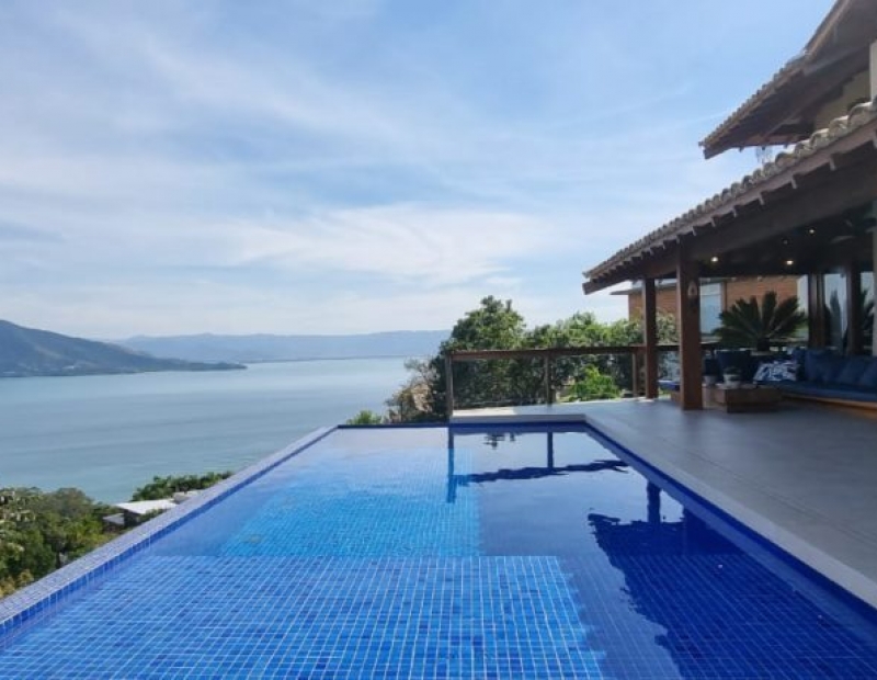 Belíssima piscina com borda infinita, espaço gourmet e jardim de inverno.