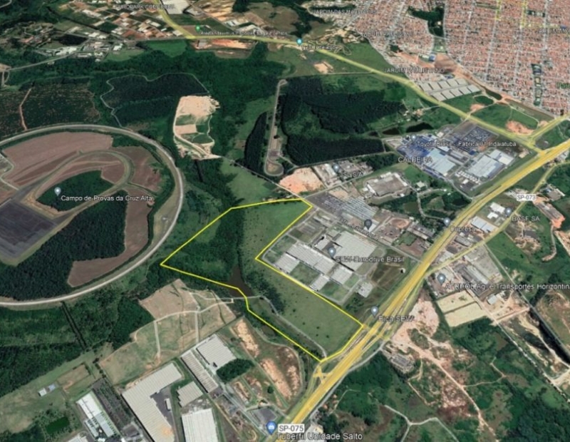 Loteamento em Indaiatuba com área de 35,8 ha, em frente à SP 75, próximo ao Aeroporto de Viracopos, região Metropolitana de Campinas.