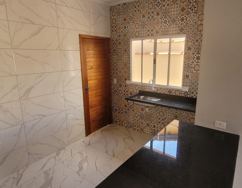São 2 dormitórios sendo 1 suíte, wc social, sala e cozinha americana.