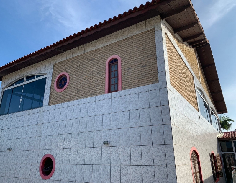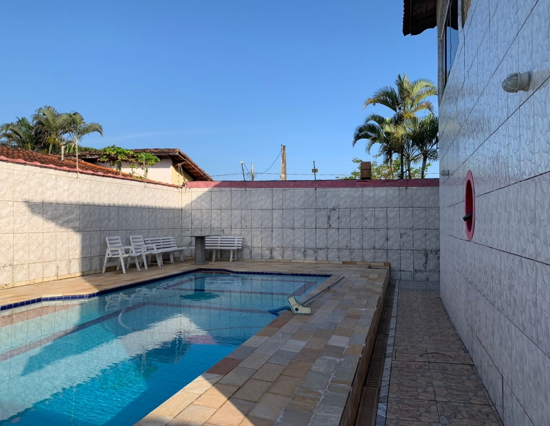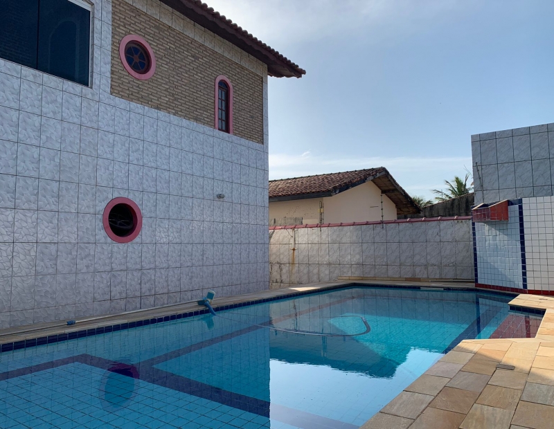 Churrasqueira, piscina, área de lazer e quintal amplo