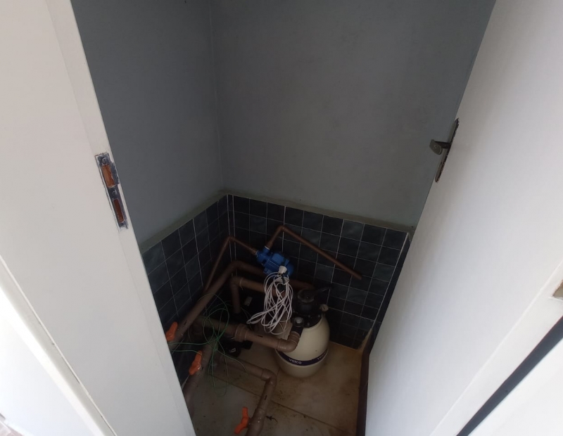 Área de serviço, área de lazer com piscina, churrasqueira e WC