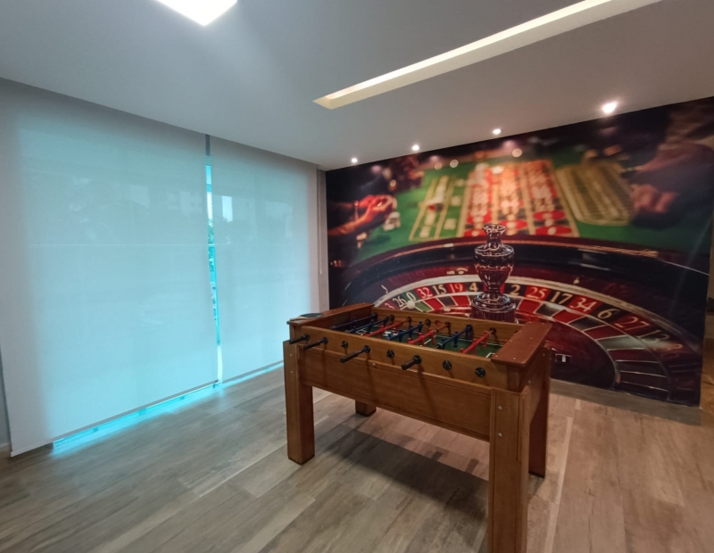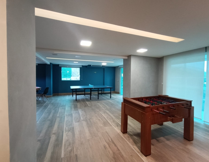 Área comum com salão de festas, salão de jogos, espaço gourmet, piscina, quadra e brinquedoteca.