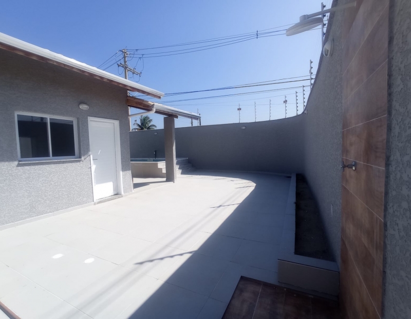 Sala e cozinha integrada, garagem para cerca de 3 veículos, área de serviço coberta, churrasqueira, ducha, lavabo para atender a área externa e piscina