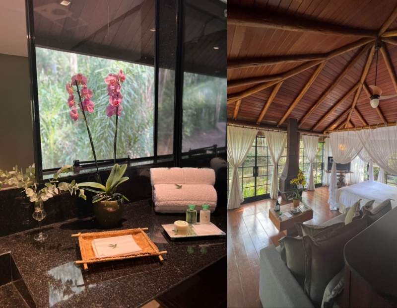 São 12 suítes encantadores: Cada um delas oferece o conforto e a privacidade que os hóspedes procuram, criando uma expectativa inesquecível em meio a natureza. Restaurante exclusivo: A residência principal conta com um restaurante que não apenas oferece uma culinária deliciosa, mas também proporciona vistas deslumbrantes da paisagem.