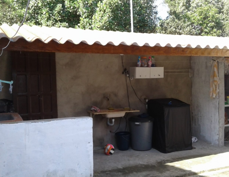 Garagem para 2 autos, quintal amplo, com porta lateral.
